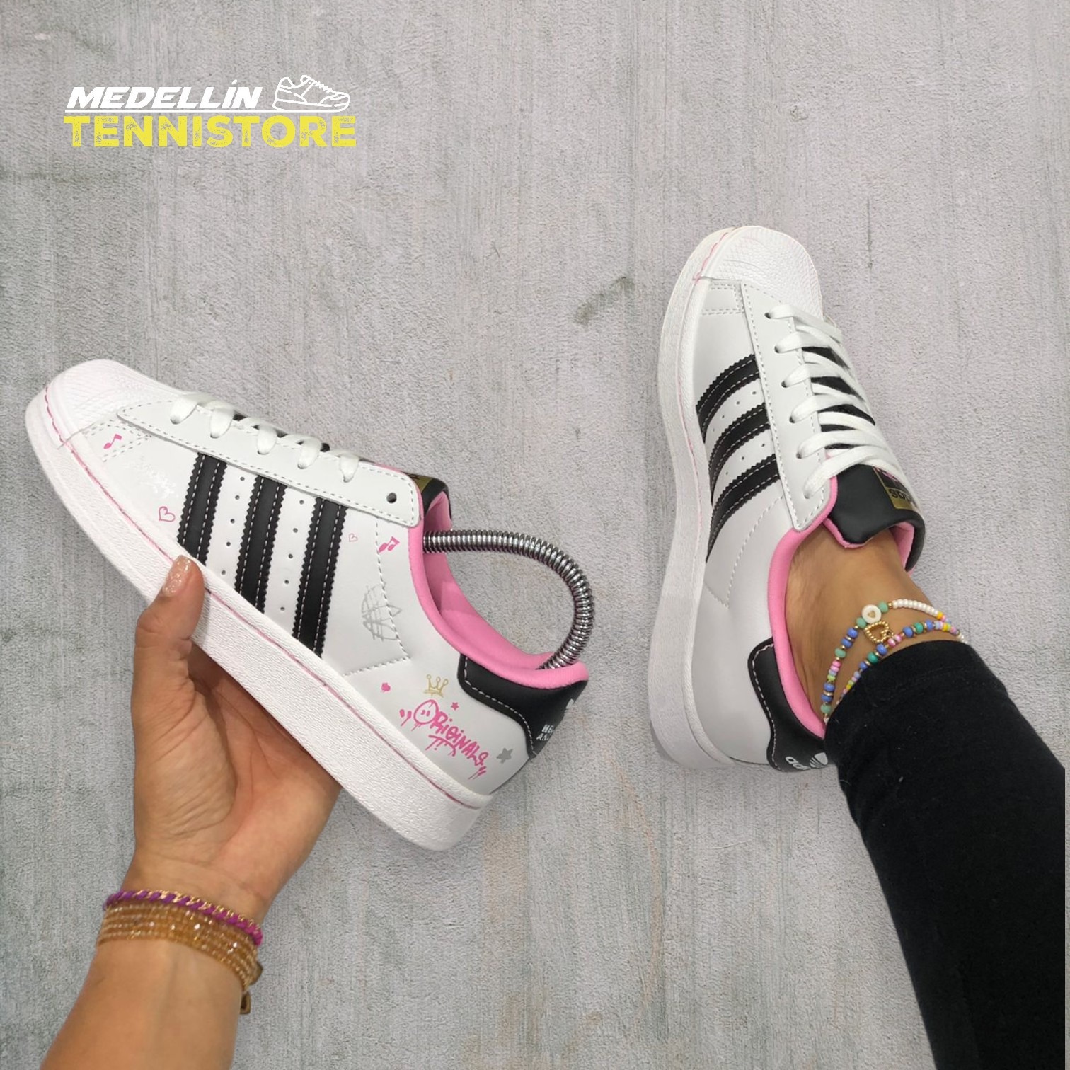Los Adidas Superstar ofrecen un estilo urbano clásico con acabados premium y calidad importada 1.1. Su diseño icónico con punta shell y materiales resistentes los hace perfectos para el día a día, combinando comodidad y un look versátil que nunca pasa de moda. Ideales para outfits casuales y streetwear.