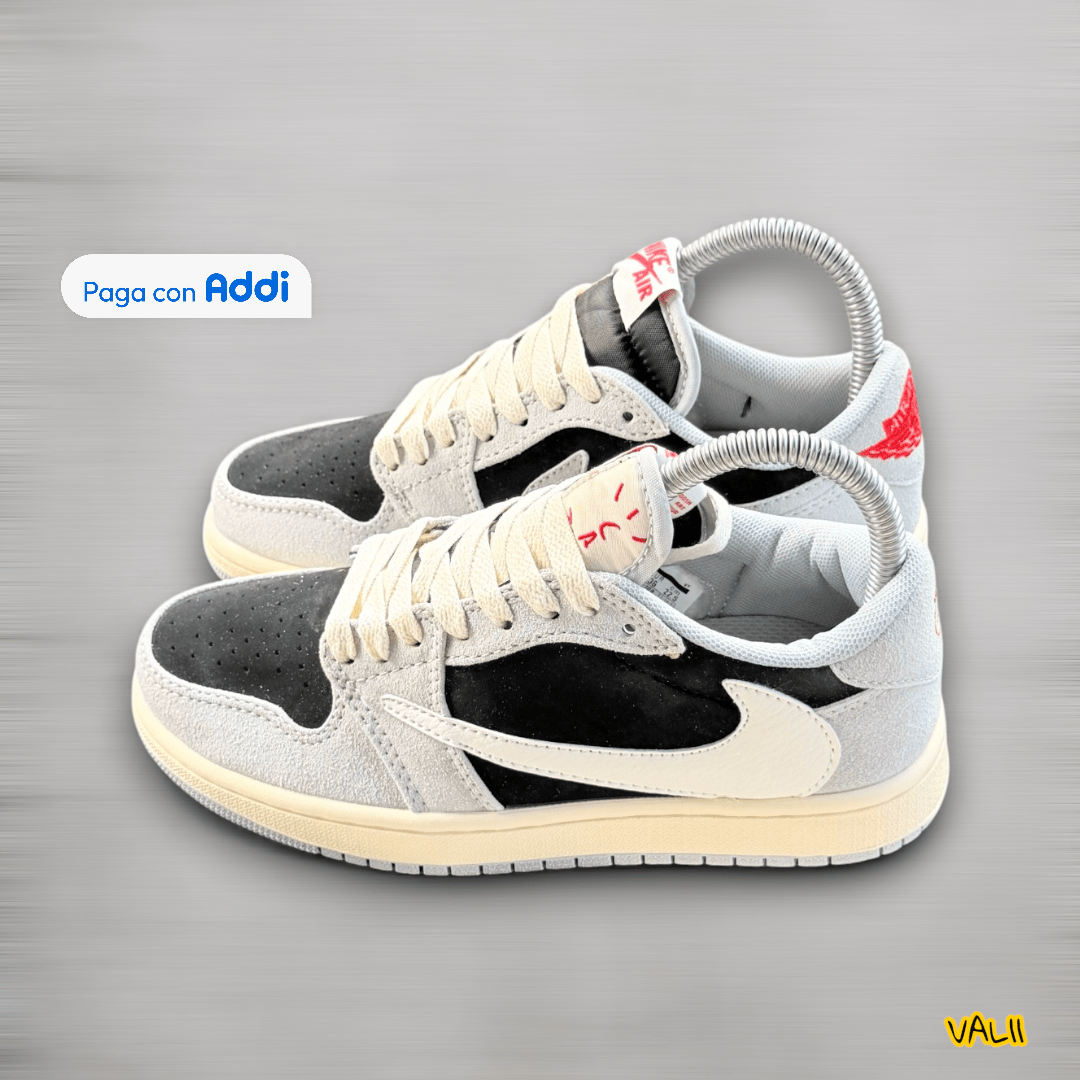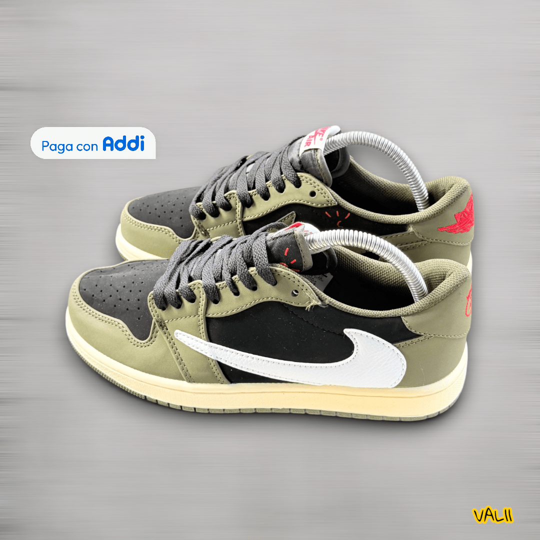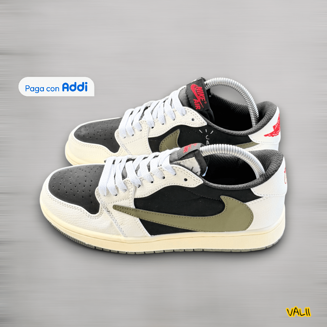 Tenis Jordan Travis Scott de calidad importada 1.1, elaborados con materiales premium que destacan por su excelente durabilidad, comodidad y un diseño icónico. Incorporan detalles característicos como el swoosh invertido, tonos urbanos y una construcción de alto nivel que garantiza un look distintivo y moderno. Perfectos para quienes buscan estilo, presencia y acabados de primera en cada paso.